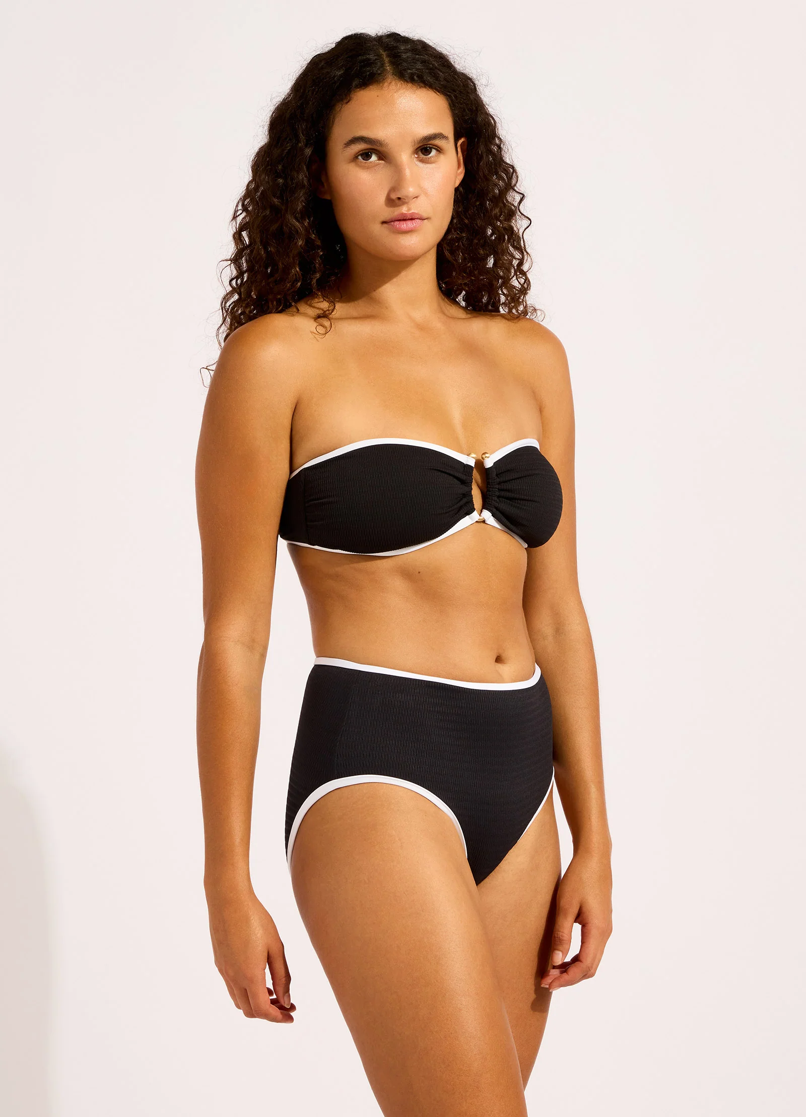 -70%Beach Bound Ring Front Bandeau Bikini Top - Black—